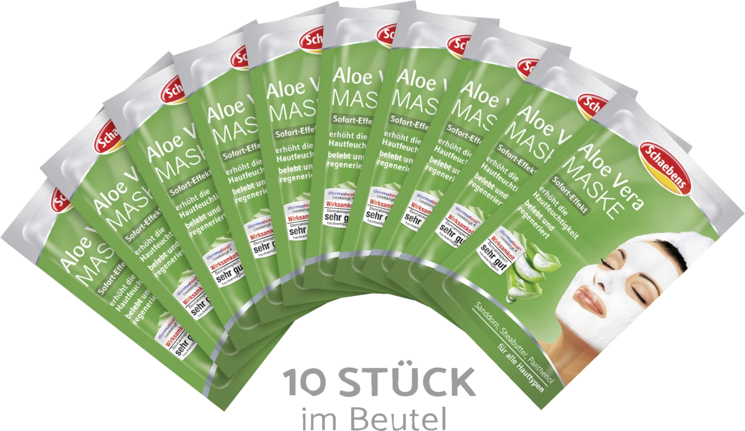 Die Extrakte der Wüstenpflanze Aloe Vera sind reich an Vitaminen, Mineralsalzen und Aminosäuren. Ihre heilende und regenerierende Wirkung wird von vielen Völkern seit Jahrhunderten geschätzt. Diese Maske enthält besonders viel Aloe Vera, erhöht die Hautfeuchtigkeit nachweislich und füllt die Feuchtigkeits-Depots auf. Die Haut wird langanhaltend mit Feuchtigkeit versorgt. Die reichhaltige Rezeptur mit Sanddorn-Extrakt, Sheabutter und Panthenol pflegt intensiv und regeneriert den Teint. Für ein strahlendes und vitalisiertes Hautbild.