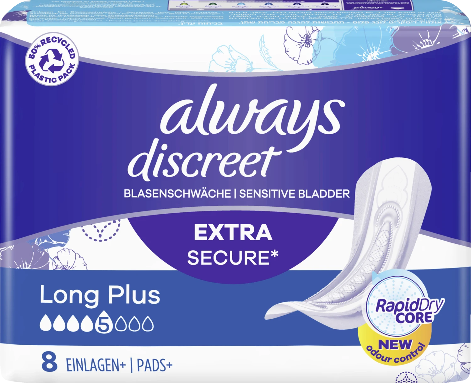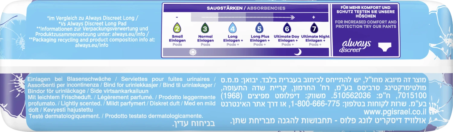 Ideal für stärkere Anforderungen – Always Discreet Inkontinenzeinlagen Long Plus bieten Extra Schutz. Sie wurden entwickelt, um Ihnen zusätzlichen Komfort und Saugfähigkeit zubieten, damit Sie sich keine Sorgen mehr machen müssen. Ihre Struktur ermöglicht starken Schutz mit einem ultra-dünnen Kern,sodass Sie keine Kompromisse zwischen Komfort und Schutz eingehen müssen. Wenn Niesen oder Lachen Blasenschwäche verursacht, bieten die Always Discreet Einlagen Long Plus optimalen Schutz.