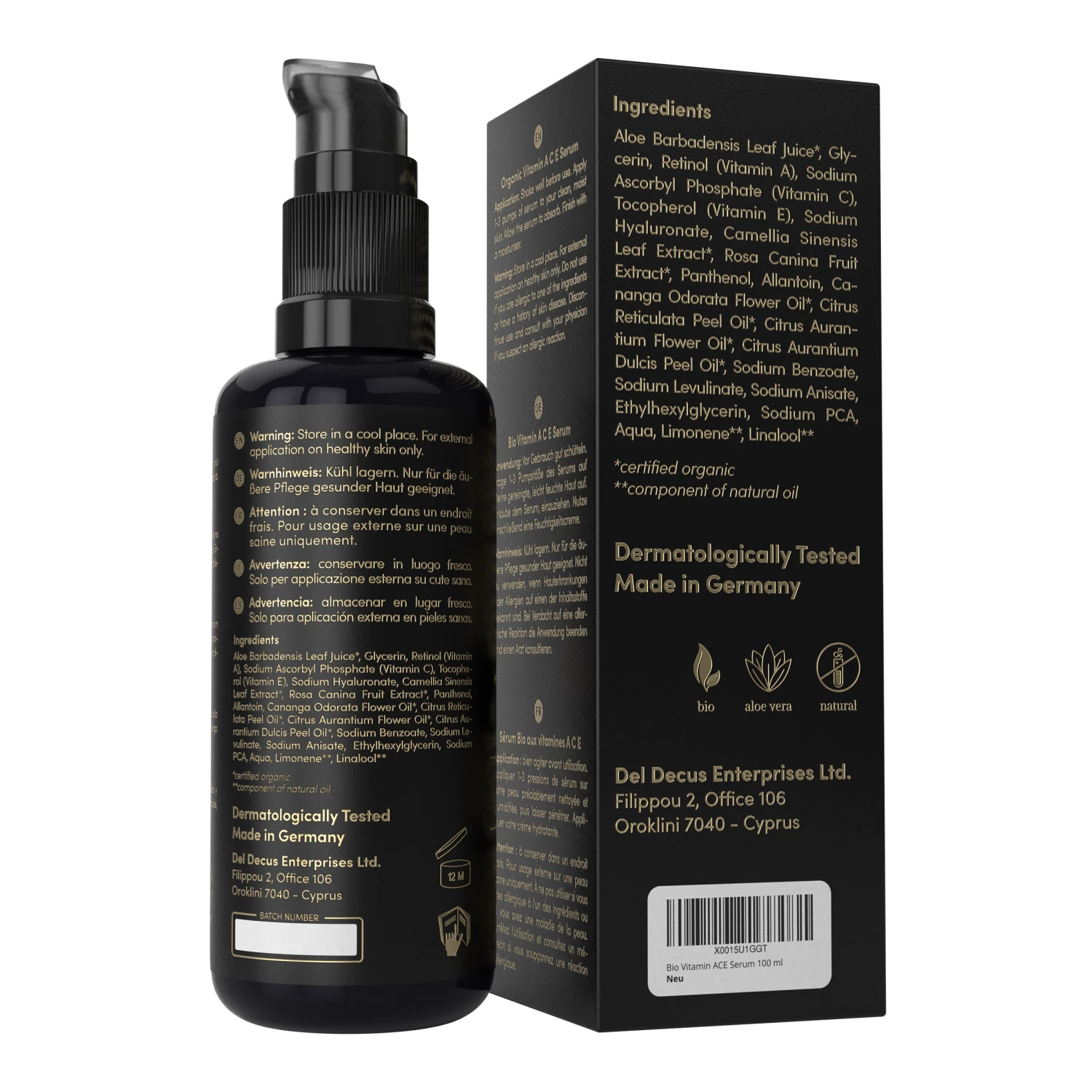 ACE Anti-Aging Serum mit Multi-Vitamin-Komplex in hoher Dosierung schützt die Haut mit verfeinernden, antioxidativen Vitaminen gegen Umwelteinflüsse und Zeichen der Zeit. Dazu pflegen Aloe Vera und Hyaluronsäure mit tiefenwirksamer Feuchtigkeit.