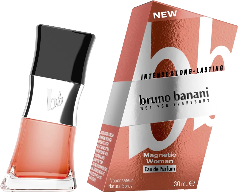 Verführerisch anziehend – bruno banani Magnetic Woman Eau de Parfüm ist betörende Sinnlichkeit mit einem Hauch von Luxus. Edler Jasimin trifft auf süßen Gianduja. Kakao und feinwürzige Zeder.