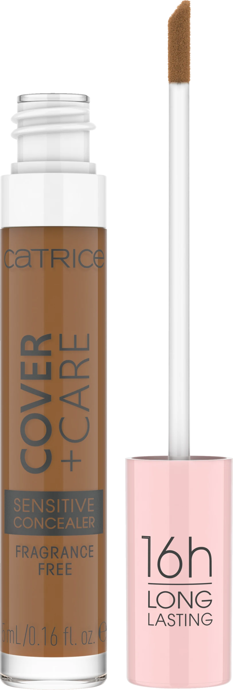 Der Cover + Care Sensitive Concealer überzeugt mit seiner mittleren, aufbaubaren Deckkraft und natürlich-mattem Finish. Die wasserfeste Textur hält bis zu 16h lang, ist parfümfrei und für sensible Haut geeignet – die Verträglichkeit auf empfindlicher Haut wurde dermatologisch bestätigt. Außerdem ist die Formulierung mit beruhigender Kamille angereichert. Der flüssige Concealer lässt sich leicht auftragen und verblenden. Wasserfester, parfümfreier Concealer mit 16h Halt für sensible Haut.