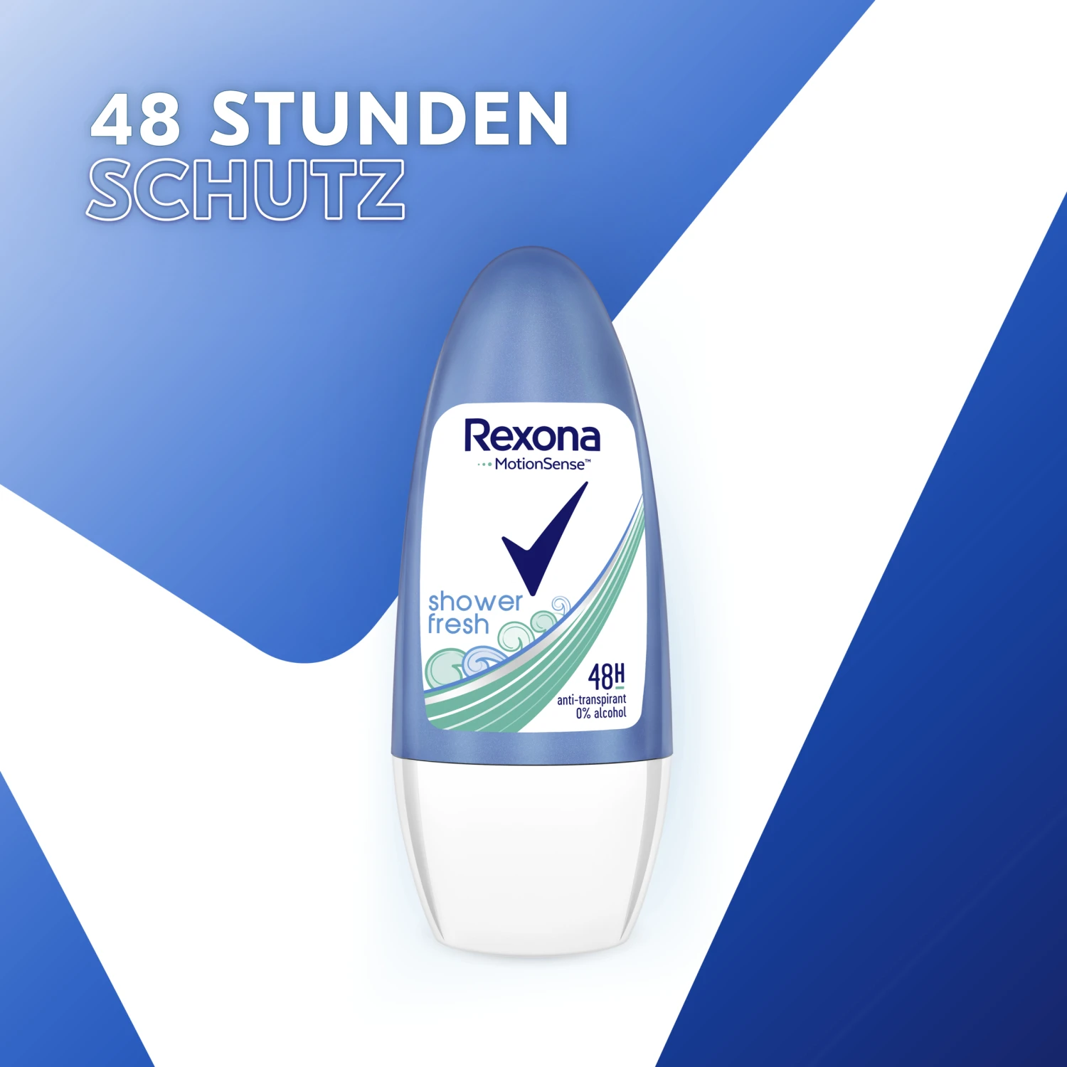 Den ganzen Tag wie frisch geduscht: Mit dem Rexona Anti-Transpirant Deo Roll-On Shower Fresh mit MotionSenseTechnologie kein Problem. Denn dieser Deo Roller bietet ein extra langanhaltendes Frischegefühl. Ein dezenter, frischer Duft und das gute Gefühl, sich 48 Stunden lang keine Sorgen um Achselnässe oder Schweiß machen zu müssen.