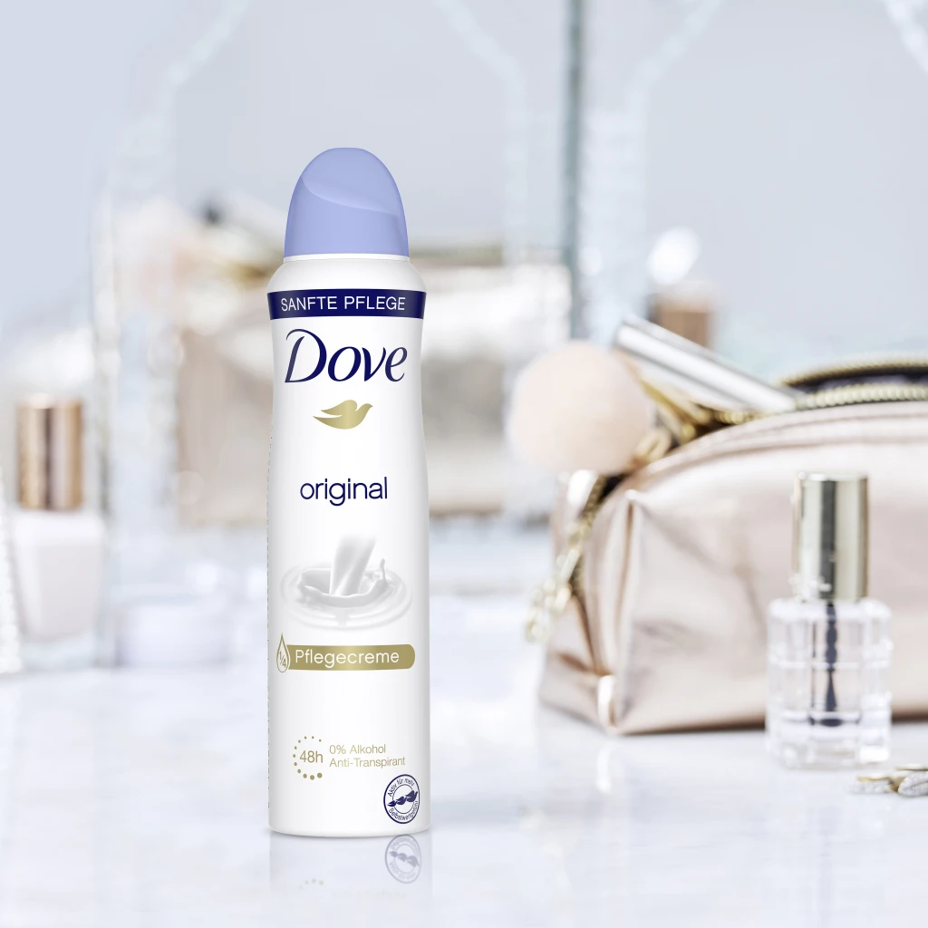 Ein Anti-Transpirant, auf das Verlass ist: das Dove Deospray original bietet 48 Stunden Schutz mit dezentem Duft, der den ganzen Tag ein frisches und reines Gefühl verleiht. Die Formel mit 1/4 Pflegecreme hilft der Haut, sich schneller zu regenerieren und macht die zarte Achselhaut schön weich und glatt.