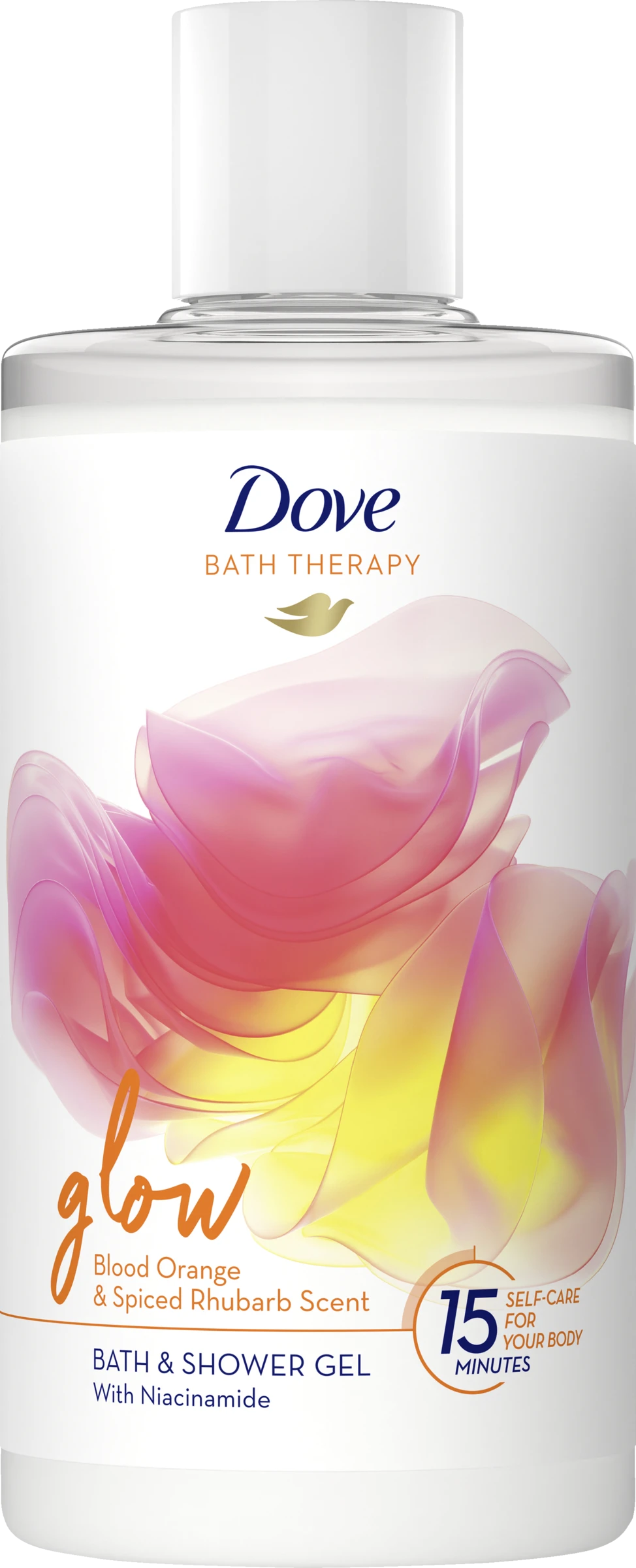 Das Bad & Duschgel von Dove sorgt mit hochwertiger 3-fach-Pflege für schöne Haut. Der Badeschaumzusatz enthält Niacinamide (Vitamin B3), welche die Peptidbildung in der Haut anregen und somit die Hautregeneration unterstützen. Die Formulierung der Variante Glow mit Niacinamiden unterstützt die Hautbarriere für eine sich gesund anfühlende, gepflegte und glowy Haut. Hautnatürliche Feuchtigkeitsspender binden Feuchtigkeit in der Haut, um trockene Haut zu verhindern. Dank der Premium-Inhaltsstoffe verleiht das Dove Bad & Duschgel einen 15-minütigen Self-Care-Moment für den Körper. Der langanhaltende Duft von Rhabarber und Blutorange verwöhnt die Sinne und sorgt für ein verwöhnendes Badeerlebnis. Das Dove Bad & Duschgel ist pH-neutral und ohne Sulfat SLES.