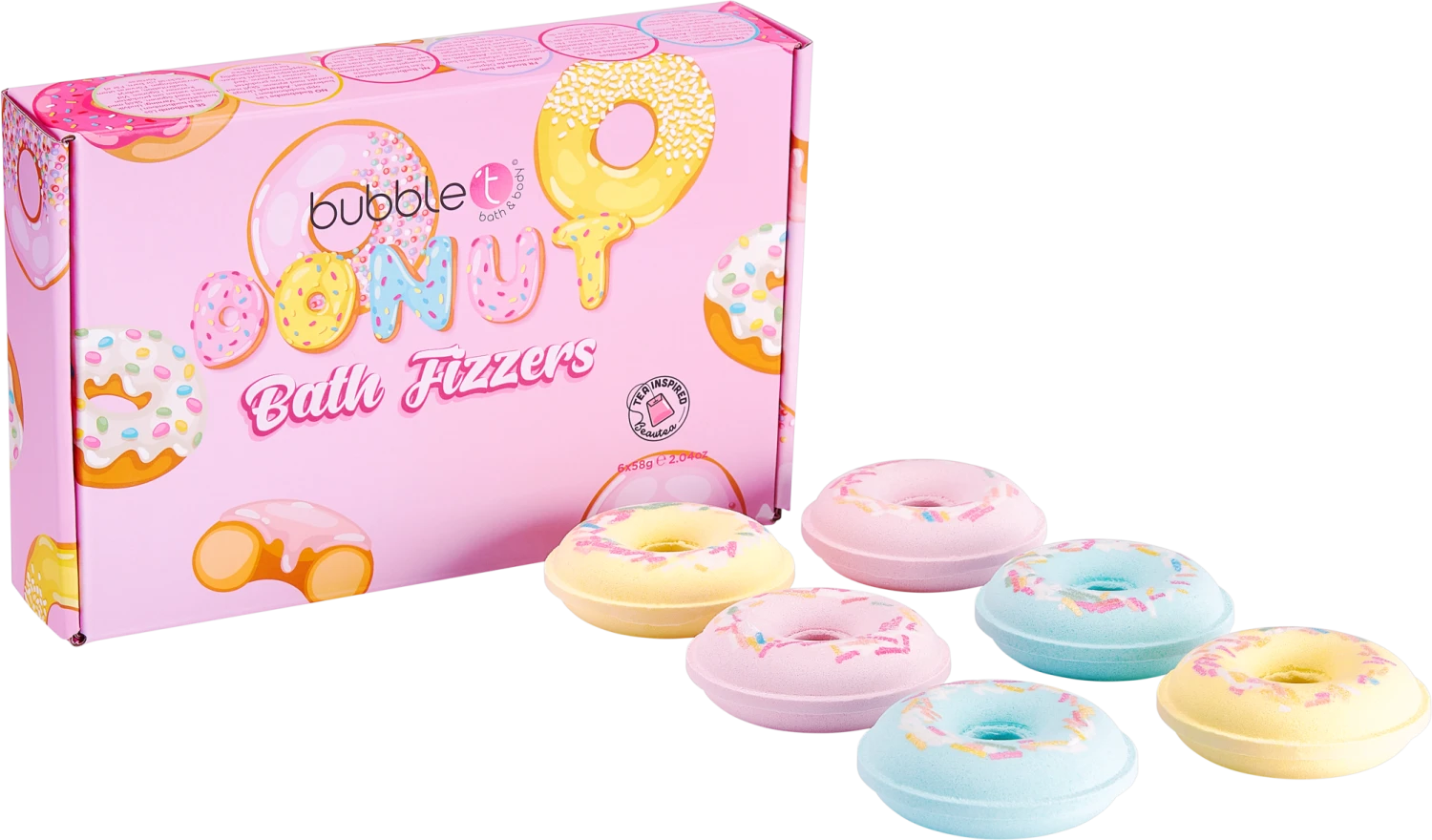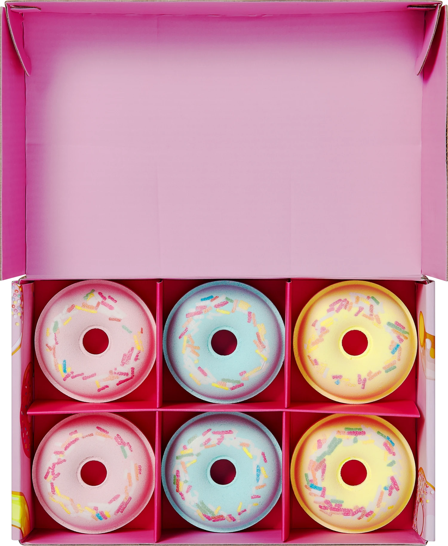 Was ist besser als eine Schachtel mit leckeren Donuts? Wie wäre es mit einer Schachtel mit 6 Donut-Fizzern für ein Bad. Mit diesem exklusiven Geschenkset mit süßen und fruchtigen Düften können Sie eine Reihe von entspannenden Bädern genießen.
