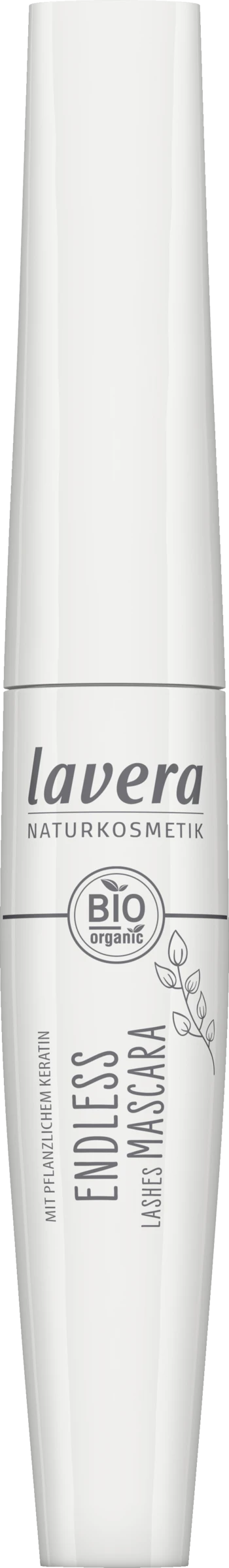 Die lavera Endless Lashes Mascara schenkt Volumen und spektakuläre Länge für einen wachen Blick. Dabei versorgt die vegane Rezeptur mit wirksamen Inhaltsstoffen aus der Natur die Wimpern mit sanfter Pflege, reichhaltiges Bio-Jojobaöl verwöhnt die Wimpern und dank pflanzlichem Keratin fühlen sich die Wimpern gestärkt an. Das spezielle Sanduhr-Bürstchen verleiht im Handumdrehen einen natürlich schönen Augenaufschlag. Die Mascara-Borsten sind am oberen und unteren Ende der Bürste länger und erreichen mühelos die äußeren Wimpern. Außerdem sorgen die kürzeren Borsten in der Mitte für intensives Volumen vom Ansatz an. Die Wimpern werden optimal getrennt, wirken länger und verkleben nicht. – Vegan – Ohne Silikone – Ohne Mineralöl – Ohne Mikroplastik – Dermatologisch und augenärztlich getestet – Für Kontaktlinsenträger geeignet – Klimaneutral (ClimatePartner.com/12310-1610-1001) – Zertifizierte Naturkosmetik – Made in Germany