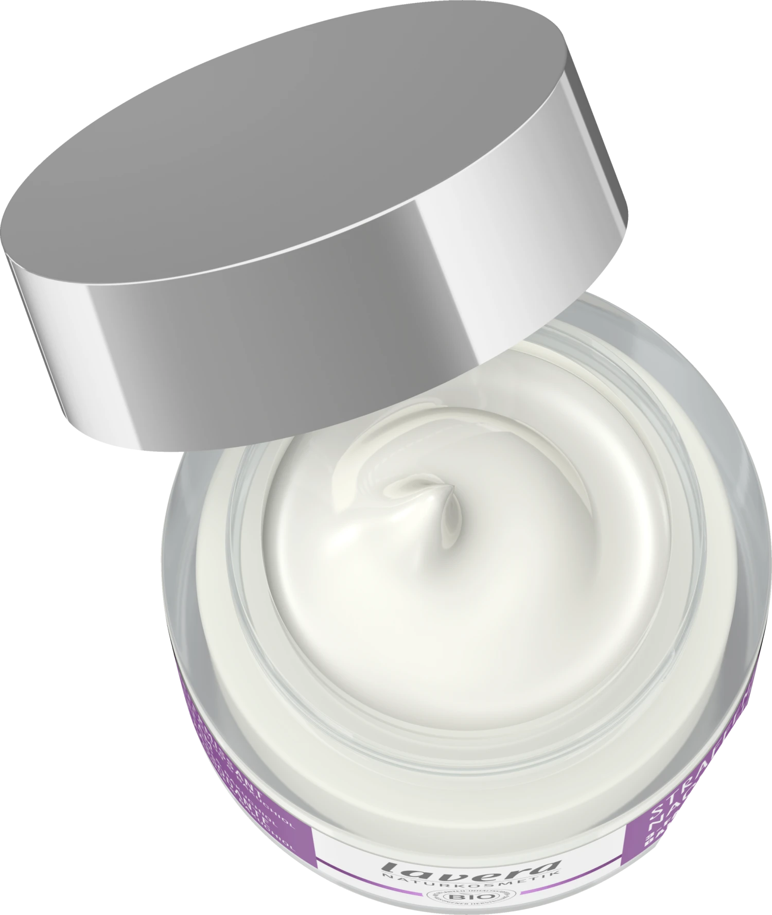 Erlebe das lavera Gefühl spürbar strafferer Haut über Nacht. Die straffende Nachtpflege mit 3-fach-Hyaluron und dem Power-Wirkstoff Bakuchiol wirkt dem Alterungsprozess der Haut auf natürliche Weise entgegen. Die hochwirksame und gut verträgliche Formel stimuliert nachweislich das hauteigene Kollagensystem und mindert Falten. Spüre, wie die reichhaltige Textur deine Haut umhüllt, sie intensiv pflegt und die Regeneration in der Nacht unterstützt – für ein strafferes und erholtes Hautbild am Morgen.