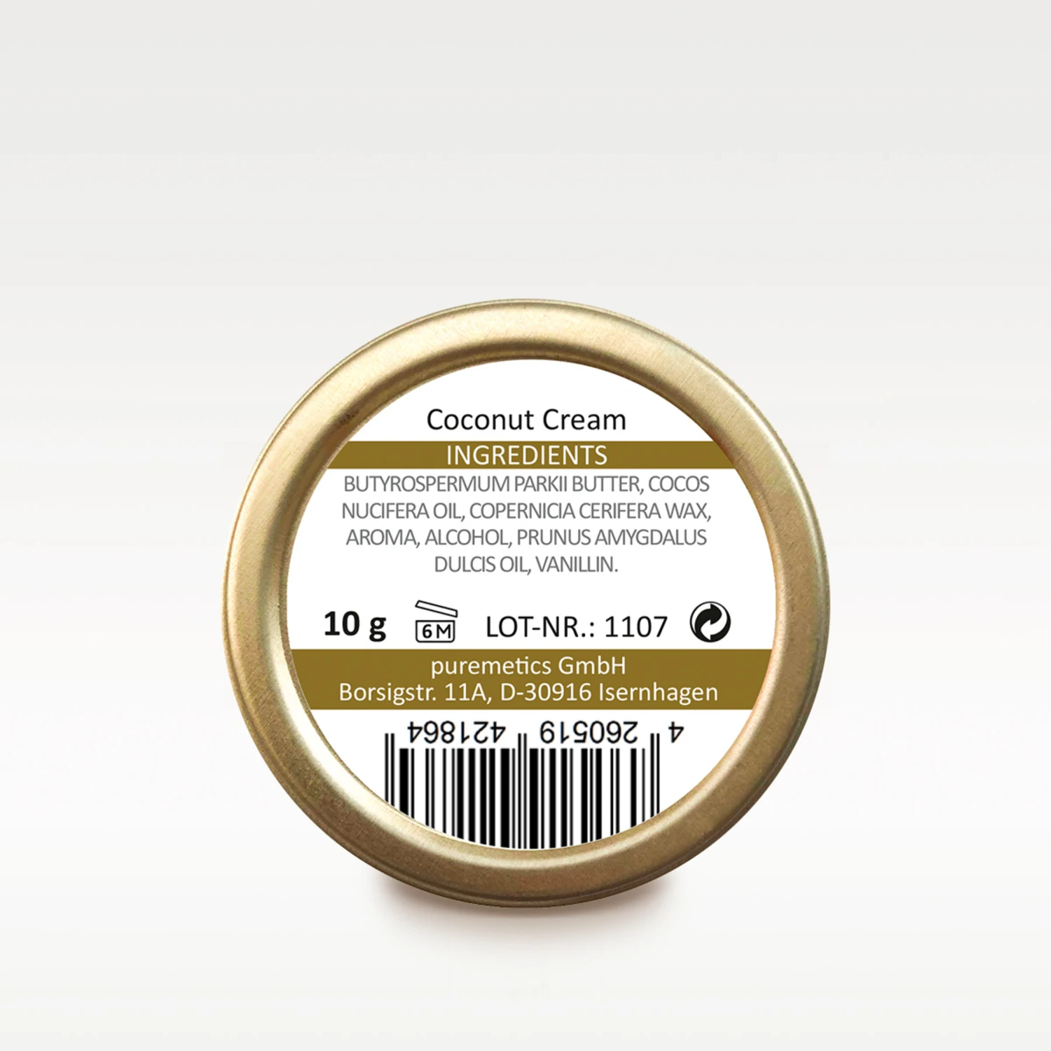 BUTYROSPERMUM PARKII BUTTER, COCOS NUCIFERA OIL, COPERNICIA CERIFERA WAX, AROMA, ALCOHOL, PRUNUS AMYGDALUS DULCIS OIL, VANILLIN