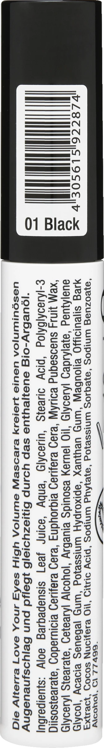 Die Alterra Love Your Eyes High Volume Mascara kreiert einen voluminösen Augenaufschlag und pflegt gleichzeitig durch das enthaltene Bio-Arganöl.
