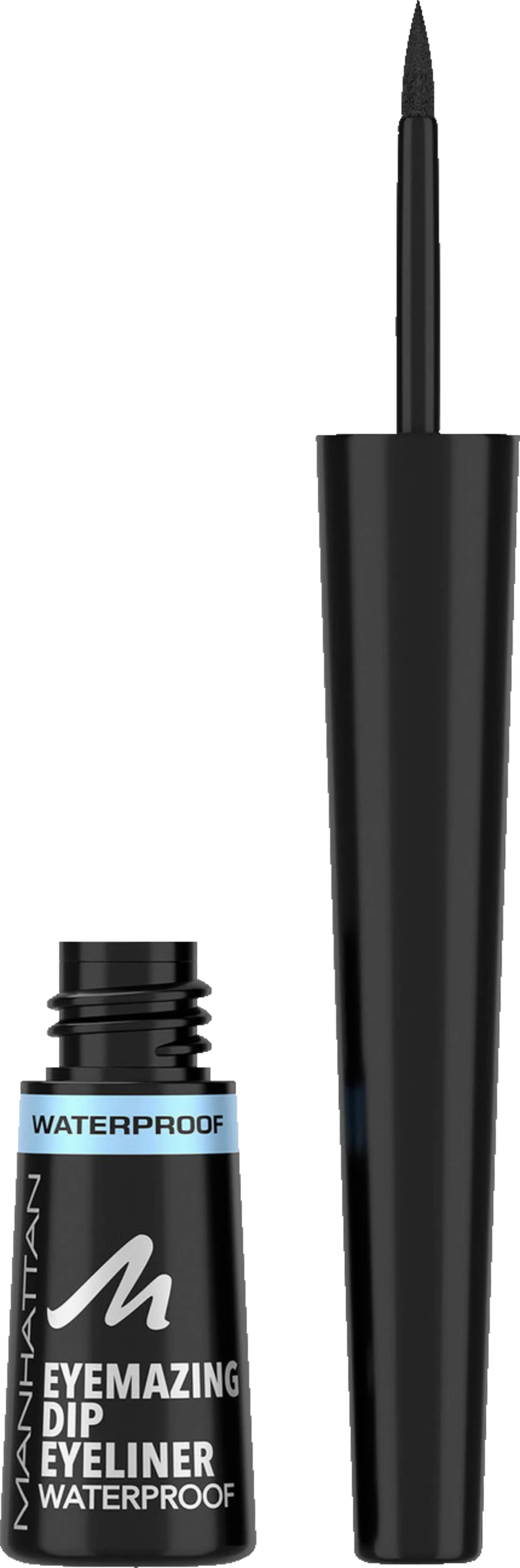 Grafischer Eyeliner oder klassischer Katzenaugen-Look? Der Manhattan Eyemazing Dip Eyeliner Fb. 001 Black Waterproof ist perfekt geeignet für jeden Eyeliner-Look: Der hochpigmentierte Eyeliner überzeugt mit intensivem, matt-schwarzen Finish, das bis zu 16 Stunden hält.