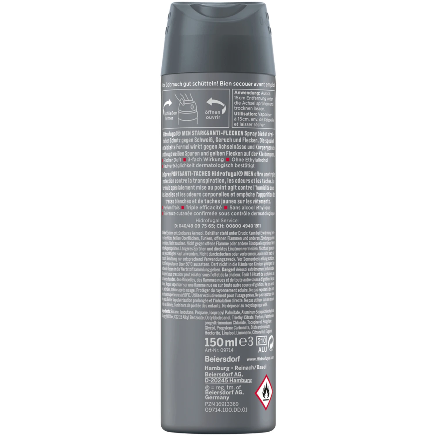 Extrem entzündbares Aerosol. Behälter steht unter Druck: Kann bei Erwärmung bersten. Von Hitze, heißen Oberflächen, Funken, offenen Flammen oder anderen Zündquellen fernhalten. Nicht rauchen. Nicht gegen offene Flammen oder andere Zündquellen sprühen. Nicht in die Augen sprühen. Längeres Sprühen und direktes und direktes Einatmen vermeiden. Nicht auf gereizter und geschädigter Haut anwenden. Nicht durchstechen oder verbrennen, auch nicht nach Gebrauch. Benutzung nur entsprechend Verwendungszweck. Vor Sonneneinstrahlung schützen. Nicht Temperaturen über 50°C aussetzen. Darf nicht in die Hände von Kindern gelangen. Nur entleerte Dosen in die Wertstoffsammlung geben.