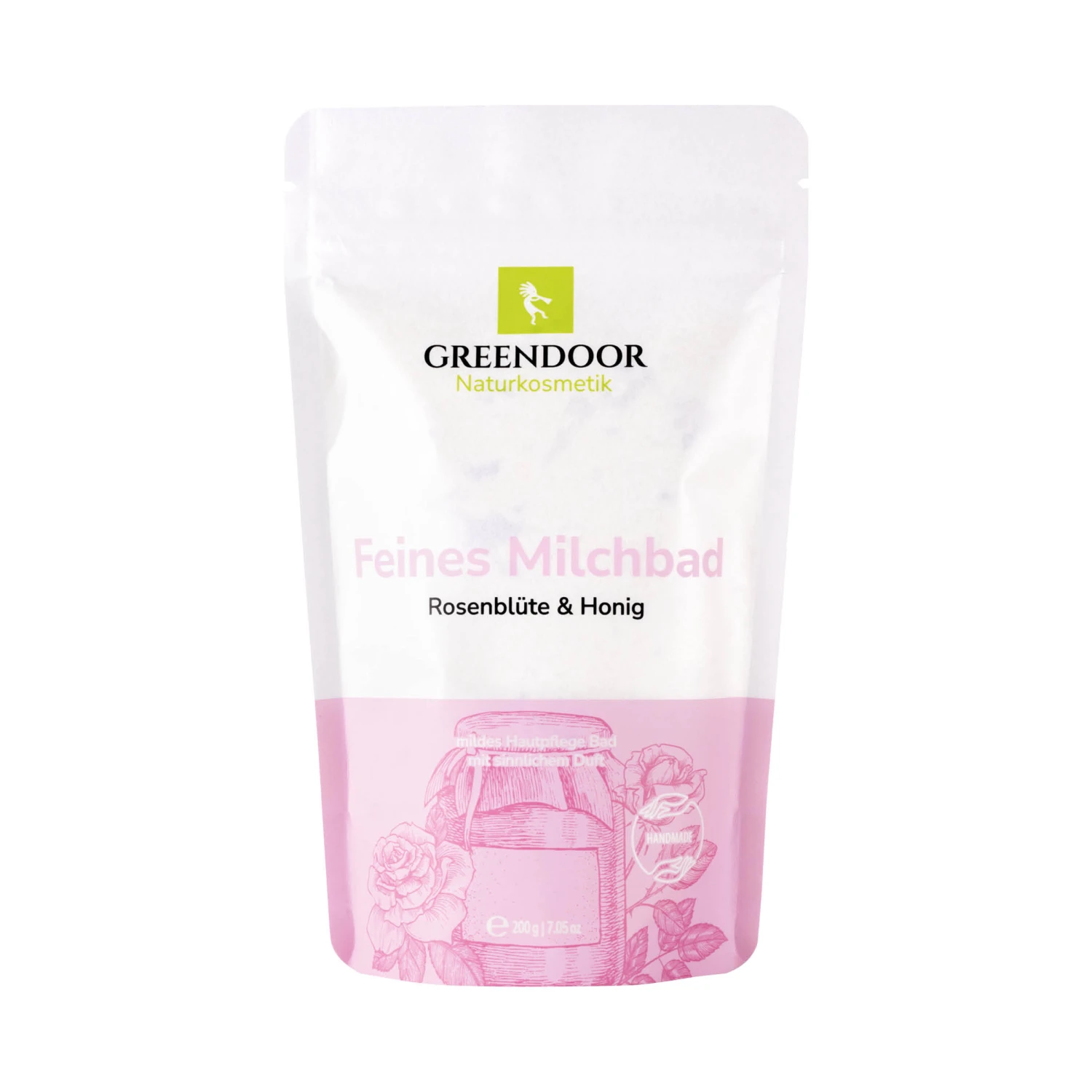 Greendoor Milchbad Rosenblüte Honig ist besonders sanft und pflegend. Milch, Molke, Honig und Meersalz pflegen die Haut auf natürliche Weise samtweich. Zarter Rosenduft lässt Ihre Gedanken schweben. Greendoor Feines Milchbad Rosenblüte Honig enthält Milch und proteinreiche Molke – sie sind besonders sanft und pflegend zur Haut ohne diese zu überfetten. Bio Blütenblätter von duftenden Damaszener Rosen und echter Bienenhonig sorgen für den Wellnessfaktor und zusätzliche Pflege. Das Milchbad ist frei von reizenden Tensiden, enthält keine Schaumbildner, Farbstoffe oder künstliche Zusätze. + natürliche Pflege durch echten Bienenhonig + Wellnessfeeling durch Rosenblütenblätter
