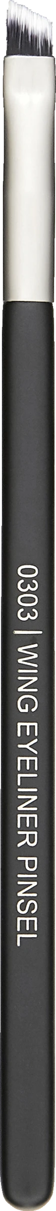 Essentiell ist beim Foxy Eye der betonte Außenwinkel des Auges. Mit dem 0301 Lidschattenpinsel flach wird im ersten Schritt das Augenlid in einem helleren Farbton wie z.B. hellbraun geschminkt sowie der Augen-Außenwinkel schattiert. Für den Lifting-Effekt ist es wichtig die Farbe sanft nach obenhin zum Brauen-Ende auszublenden, sie darf dabei aber nicht unter den Augenwinkel rutschen. Sitzt die helle Farbe auf dem Auge, wird der Look mit einem dunkleren Farbton intensiviert, indemmit dem 0302 Tapered Blenderpinsel die dunklere Farbe wie ein Eyeliner mit Wing am Wimpernkranz aufgetragen und nach oben hin ausgeblendet wird. Zum Schluss wird mit dem 0303 Wing-Eyliner-Pinsel ein schwarzer Lidstrich mit einem Mini-Wing gezogen, wobei aber nur der Außenwinkel betont wird. Daher idealerweise an der Mitte der Augen mit dem Eyeliner starten und die Linie in einem dezenten Wing in Richtung Augenbraue auslaufen lassen.