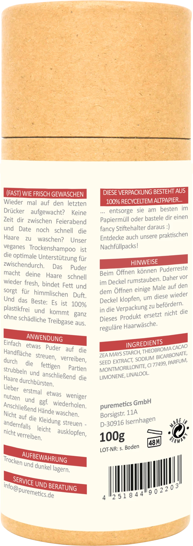ZEA MAYS STARCH, THEOBROMA CACAO SEED EXTRACT, SODIUM BICARBONATE, MONTMORILLONITE, CI 77499, PARFUM, LIMONENE, LINALOOL.
