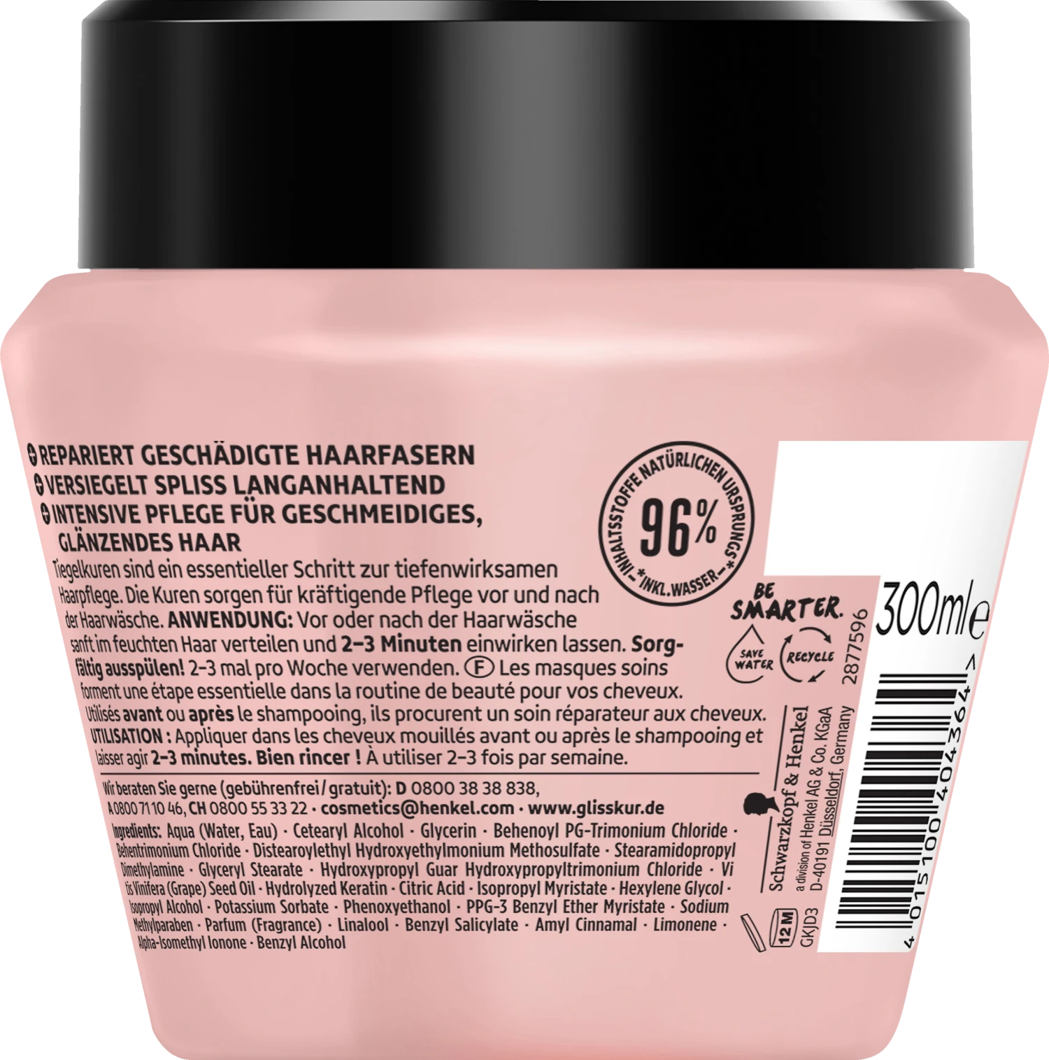 Keine Lust mehr auf Spliss und häufiges Spitzen schneiden? Versiegle Spliss langanhaltend! Die GLISS KUR Anti-Spliss Wunder 2-in-1 Tiegelkur bietet die Reparatur geschädigter Haarfasern und eine langanhaltende Splissversiegelung.
